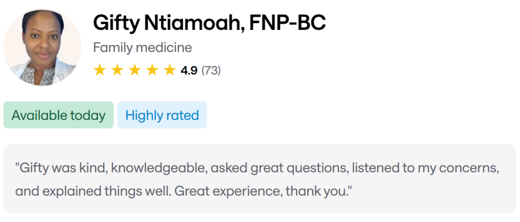 Choose a date/time that works for you and schedule your appointment directly. Many appointments — especially telehealth visits — can be available same-day or within 24–48 hours. -